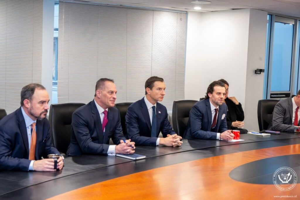 Le Président de la République, Félix-Antoine Tshisekedi Tshilombo, a tenu une séance de travail avec M. John Jovanovic, président du conseil d’administration de l’Export-Import Bank of the United States (EXIM Bank), en présence de M. Conor Coleman, Responsable des investissements à la U.S. International Development Finance Corporation (DFC), et de M. George K. Kollitides II, Conseiller principal auprès du secrétaire adjoint à la Guerre et Directeur de l’Unité de Guerre Économique.
