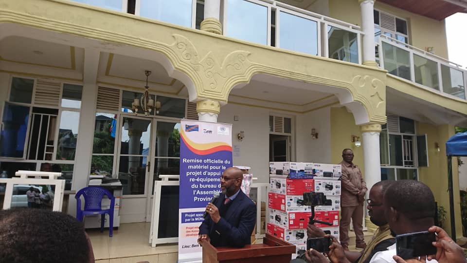 « Nous venons de participer à la remise des matériels informatiques et bureautiques au bureau de l’Assemblée provinciale. C’est dans le cadre du projet d’appui de règlement de bureau au niveau de Beni. C’est un projet financé par la MONUSCO à travers la section des affaires politiques. »