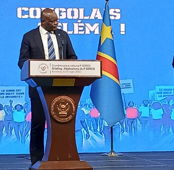 Au cours de cette intervention, le responsable du P-DDRCS a mis en avant une évolution majeure dans la mise en œuvre du programme : son déploiement dans la ville-province de Kinshasa, en plus des provinces déjà concernées par les opérations de désarmement et de démobilisation.