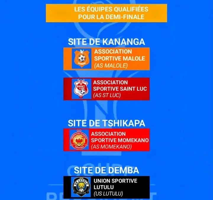 Dans l’autre groupe, l’US Lutulu de Demba et l’AS Momekano de Tshikapa complètent le tableau des demi-finalistes.